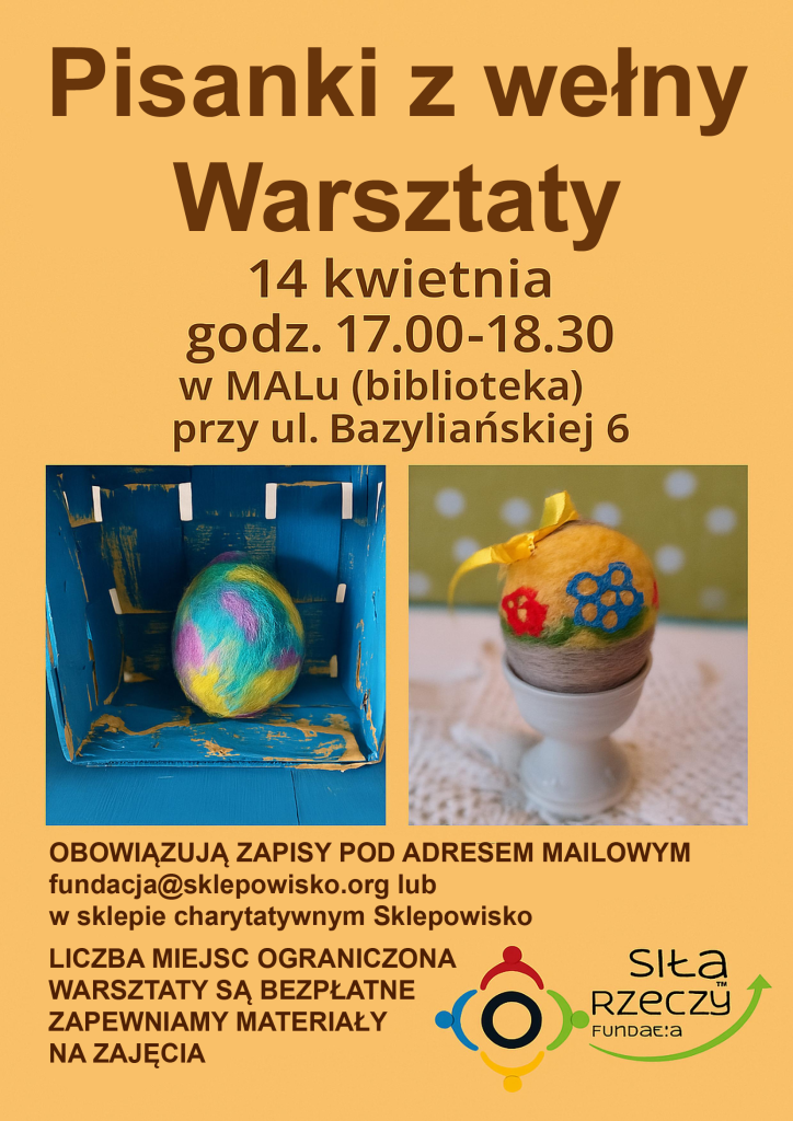 Już 14 kwietnia 2025 r., w godzinach 17:00–18:30 każdy będzie mógł stworzyć własną pisankę z wełny czesankowej.
